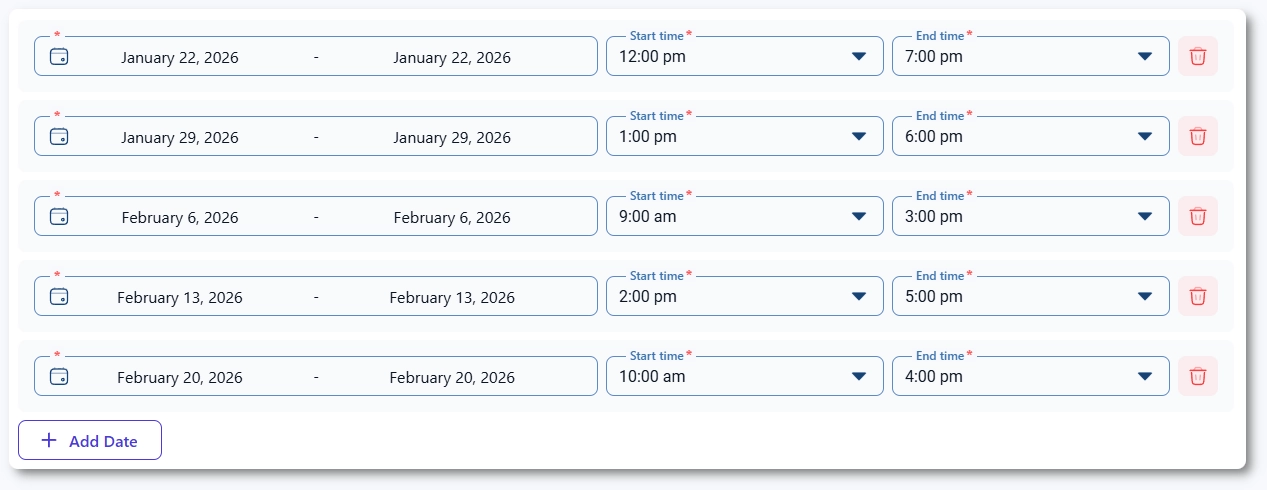 Multi-day events are designed for events that span multiple dates and represent one continuous event. They can include consecutive dates or any combination of custom dates. When an attendee books a multi-day event, they are automatically assigned to every date within that event.